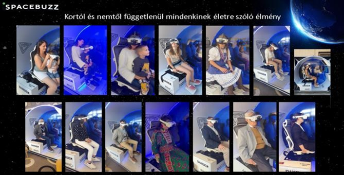 A SpaceBuzz.HU VR szimulátor egy egyedülálló élményplatform, amely lehetővé teszi, hogy a résztvevők virtuálisan átéljék az űrutazás élményét. Az oktatási célú VR tartalom a világűr felfedezésére, a Föld törékenységének megértésére és a fenntarthatóság fontosságára hívja fel a figyelmet. A szimulátor minden korosztály számára, gyerekektől a felnőttekig izgalmas és interaktív élményt kínál.